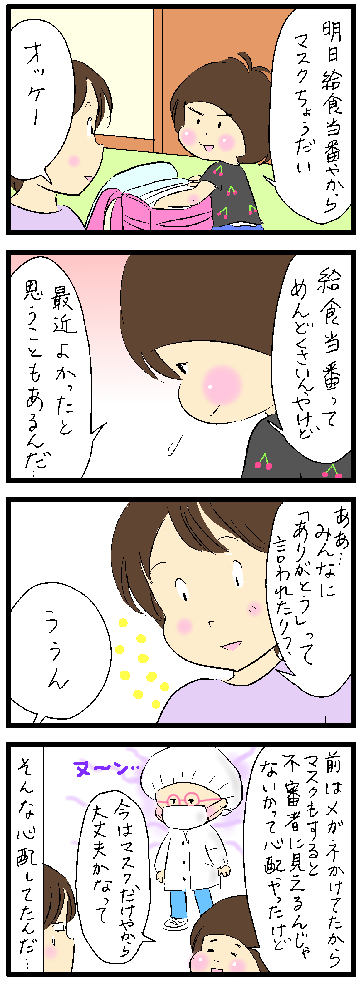 給食当番にしか見えないから大丈夫だと思います。