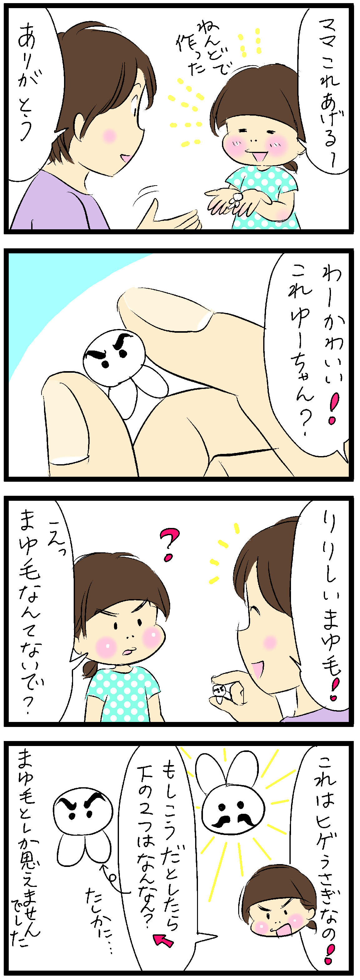 まゆ毛じゃないの? 2019年08月08日 はじめましての方はこちらから→登場人物紹介こうじゃなくてこう、だそうです。まゆ毛がチャームポイントな次女今日は何系?いつも粘土で何か作ってますおねんどお姉さんすくパラ倶楽部さんで4コマ&コラムを掲載していただいております。こちら をクリックしていただくと該当ページに飛びます。どうぞよろしくお願いいたします (´▽`) 「ゆーちゃん(次女)」カテゴリの最新記事 タグ :#次女#粘土#まゆ毛 < 前の記事次の記事 > コメント コメント一覧 (16) 1. なな 2019年08月08日 07:28 笑いました🤣 たしかに眉毛… なんだかカービィの仲間みたいな可愛さですね(^^) にしても、器用だなぁ! 0 tubuan2 がしました 8. めめ 2019年08月10日 20:22 >>1 星のカービィですか(^^)たしかに! 0 tubuan2 がしました 2. ふくちゃん 2019年08月08日 07:37 私も 雪だるま?いや、違うな~っとチョット考えちゃいました💦 ヒゲうさぎ(*≧∀≦*) カワイイ~♪ ヒゲの形が絶妙ですね(゜∇^d)!! 0 tubuan2 がしました 9. めめ 2019年08月10日 20:23 >>2 かなりまゆ毛っぽいですよね(^◇^;)私も雪だるまかと思いました〜 0 tubuan2 がしました 3. ビッグ・ママ 2019年08月08日 13:12 ゆーちゃんの作ったうさぎ、クオリティ高過ぎて驚きました!! 0 tubuan2 がしました 10. めめ 2019年08月10日 20:25 >>3 みんながコメントで褒めてくれてるよって言ったらすごく喜んでました(^^)ありがとうございます😊 0 tubuan2 がしました 4. たぬきち 2019年08月08日 13:21 かわいい、両方さかさまに しても良さそうですね 0 tubuan2 がしました 11. めめ 2019年08月10日 20:26 >>4 逆さまでもありえますよね(^◇^;) 0 tubuan2 がしました 5. すんぺけ 2019年08月08日 13:30 かわいい~‼️ゆーちゃん、手作り上手ですね‼️逆さまでも、かわいいから、アリですね😃(笑) 0 tubuan2 がしました 12. めめ 2019年08月10日 20:26 >>5 宿題そっちのけでこんな事ばっかりやってます💦 0 tubuan2 がしました 6. 草摩しおん 2019年08月08日 14:24 ヒゲうさぎ可愛く作れていますね、逆にしたりりしいまゆげもそれはそれでカッコよく見えて良い気もしますけど。 自分は不器用なのでゆーちゃんの手先の器用さにいつも感心させられます。 0 tubuan2 がしました 13. めめ 2019年08月10日 20:27 >>6 パッと見ワイルド系だけど細々とした事が好きなんですよね(^^) 0 tubuan2 がしました 7. TENKO 2019年08月09日 01:36 さすが師匠!  ̄(=∵=) ̄うさぎにひげとか、飛び抜けて独創的です!しかも、安定の高クオリティー! そして、だまし絵のようですね! まゆ毛だとしたら、えり? (*≧∀≦*) 0 tubuan2 がしました 14. めめ 2019年08月10日 20:29 >>7 だまし絵っぽいですよね(^^) 足か、えり...えりの方が良い感じです! 0 tubuan2 がしました 15. TENKO 2019年10月04日 21:02 >>14 師匠のヒゲうさぎ好き過ぎて、このデザインで、タックピン欲しいですっ❗️タックピンなら、ゴツまゆデザインとしても付けられるのですよね❓️😆😁その日の気分で付け分ける楽しみがあるというすぐれものタックピン、心底すっごく欲しいです❗️ 0 tubuan2 がしました 16. めめ 2019年10月05日 23:43 >>15 タックピン!回転して使えるからいいかもですね(^。^) 0 tubuan2 がしました コメントフォーム 名前 コメント 記事の評価 リセット リセット 顔 星 情報を記憶 コメントを投稿する