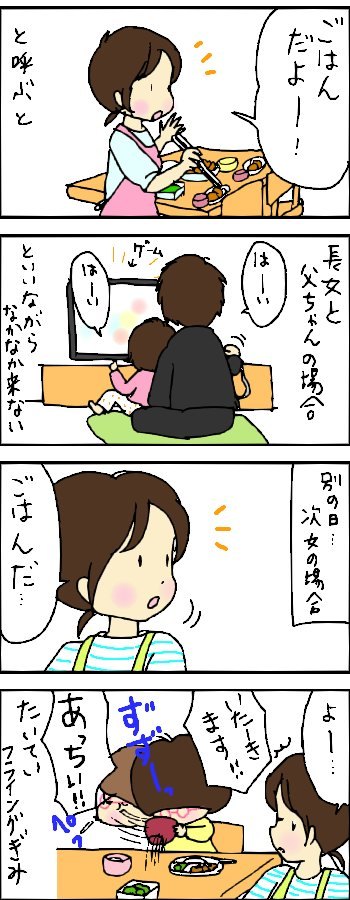 ふたりの娘との毎日を4コママンガで描いています。