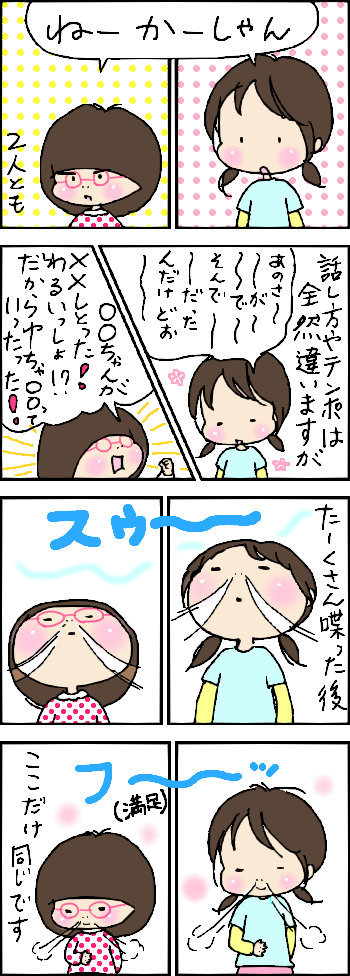 ふたりの娘との毎日を4コママンガで描いています。