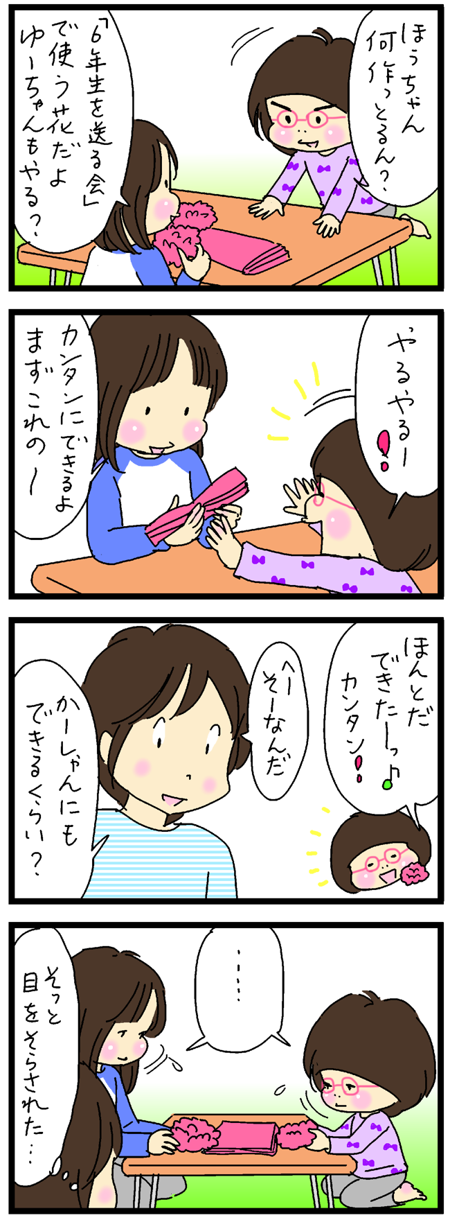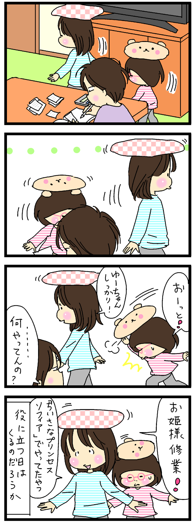 ふたりの娘との毎日を4コママンガで描いています。