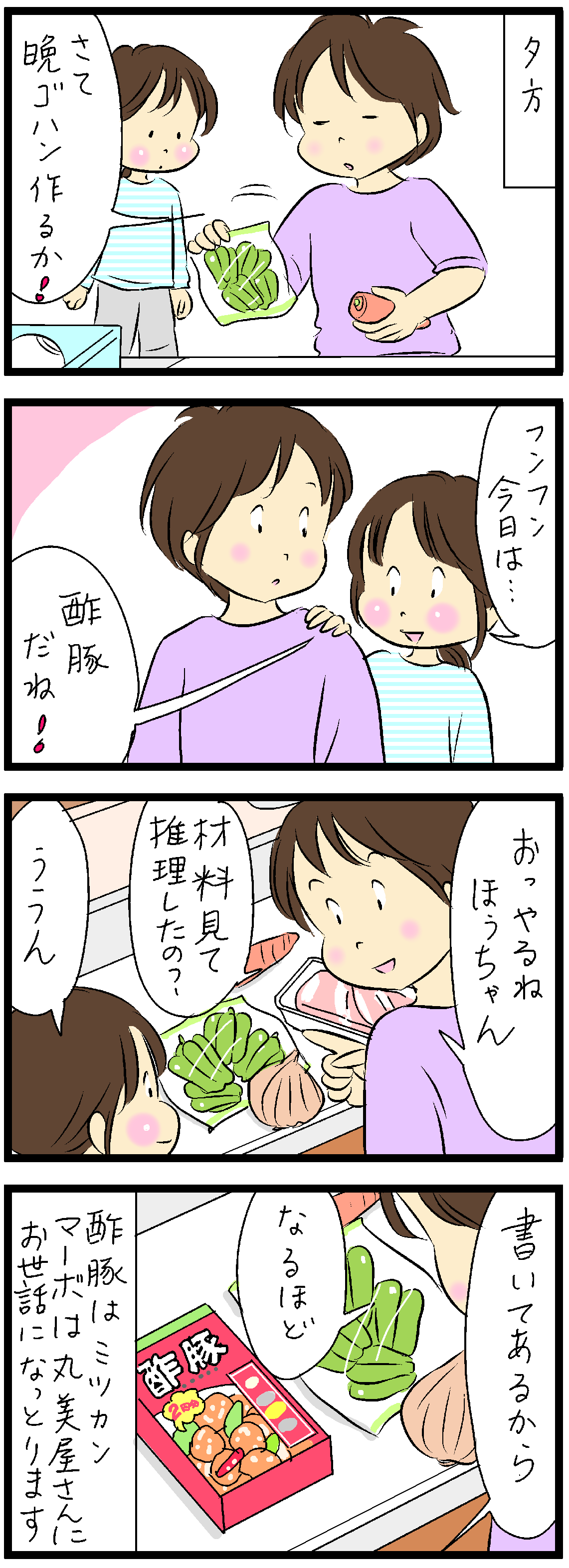 今日のメニューが分かったわけは? 2019年11月08日 見てくださってありがとうございます (´▽`)はじめましての方はこちらから→登場人物紹介間違いないかなって読者登録よろしくお願いしますこちらもどうぞ♪おいっちに!今日のおやつは 「ほぅちゃん(長女)」カテゴリの最新記事 タグ :#長女#お母さん#酢豚 < 前の記事次の記事 > コメント コメント一覧 (8) 1. 昼寝部 2019年11月08日 07:12 おはよう〜ございます 我が家と同じ酢豚のやつですな。近所の地元スーパーで安く売ってます。 麻婆豆腐はクックドゥの辛めのやつを使ってます。 0 tubuan2 がしました 4. めめ 2019年11月08日 08:41 >>1 クックドゥ、気になってたんですが、今度そっちにしてみます😊 0 tubuan2 がしました 2. なまはげ 2019年11月08日 08:21 酢豚、そんなのがあるんですね! 探してみます💕 記事の最後に過去のブログが貼ってありますが、 2つとも同じブログに飛んでしまいます😭 0 tubuan2 がしました 3. めめ 2019年11月08日 08:28 >>2 なまはげさん、教えてくださってありがとうございます! 過去記事のリンクやりなおしました! 酢豚の素うちは2回分いっぺんに使っちゃってます😊 0 tubuan2 がしました 5. すんぺけ 2019年11月08日 13:22 私も麻婆豆腐は、昼寝部さんとおそろいのクックドゥです♥️丸美屋さんも試してみようかなと思います‼️👍 0 tubuan2 がしました 7. めめ 2019年11月12日 22:35 >>5 私も今度クックドゥでやってみます😊 0 tubuan2 がしました 6. オレンジ 2019年11月09日 16:10 私の母も素を使っていましたが、自分で料理するようになると豆板醤さえ買えば、あとは醤油と砂糖とごま油で作れるので、思ってるよりずっと簡単で驚きました(*^^*)美味しいですし、安上がりです(笑) 0 tubuan2 がしました 8. めめ 2019年11月12日 22:40 >>6 豆板醤があればなんとかなるんですか∑(゚Д゚) できたらすごく安上がりだなぁ(*´꒳`*) 0 tubuan2 がしました コメントフォーム 名前 コメント 記事の評価 リセット リセット 顔 星 情報を記憶 コメントを投稿する
