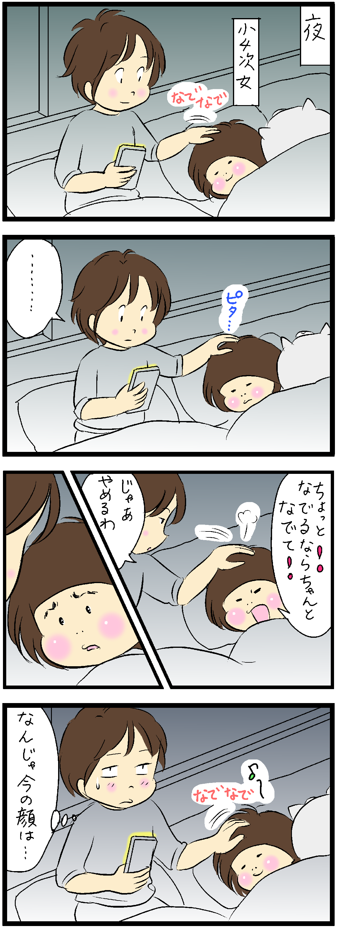 息子が寝つくまで手をつなぎたがるのですが、こっちが先に寝落ちしそうなのでスマホ片手に必死で手をつないでます(笑)