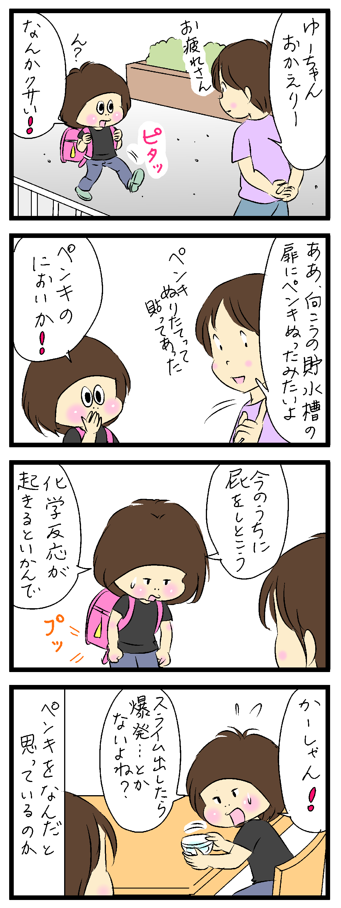 でも、確かに、子どもの頃、ペンキの匂いって、何か起こりそうな、不安をかきたてる匂いだったかも💦理科で、化学反応やらなんやら、いろいろ教わるから、「はっ‼️あれもこれも‼️世の中は危険でいっぱいなんじゃないか❗」的な気持ちだったような気がします(笑)