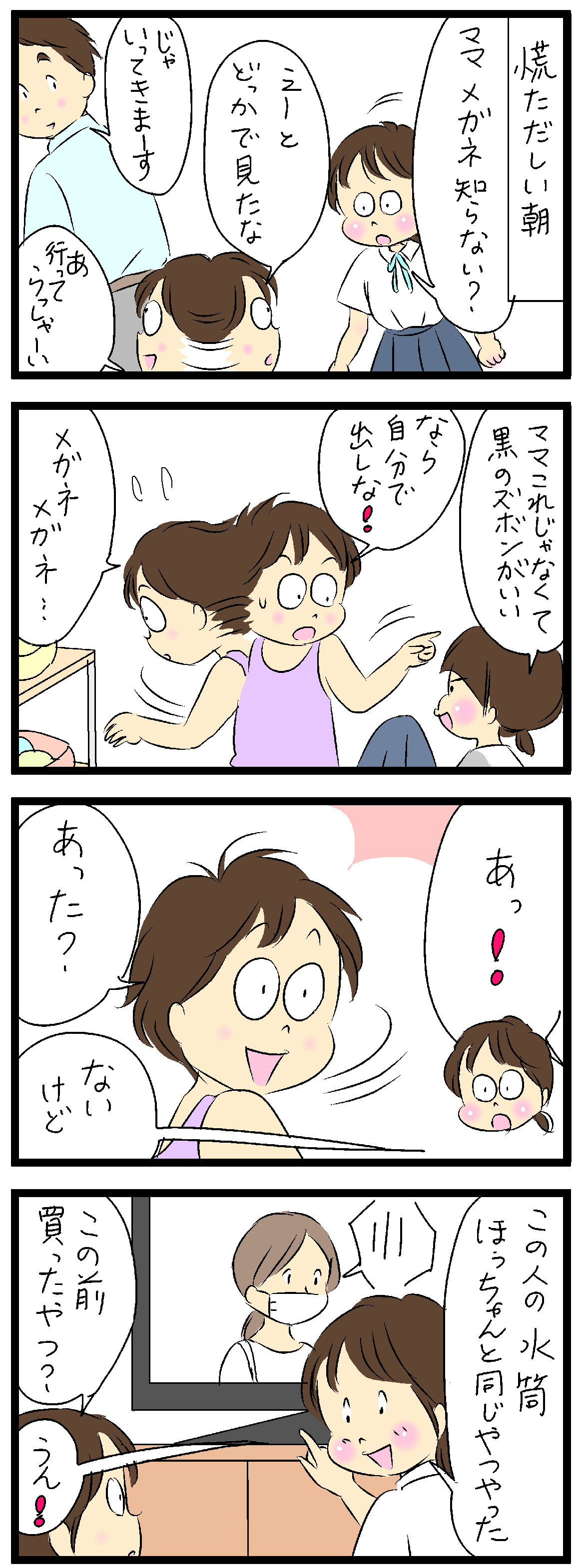 子供って朝の時間ないときに限ってあれがない、これがないってやるんですよね〜