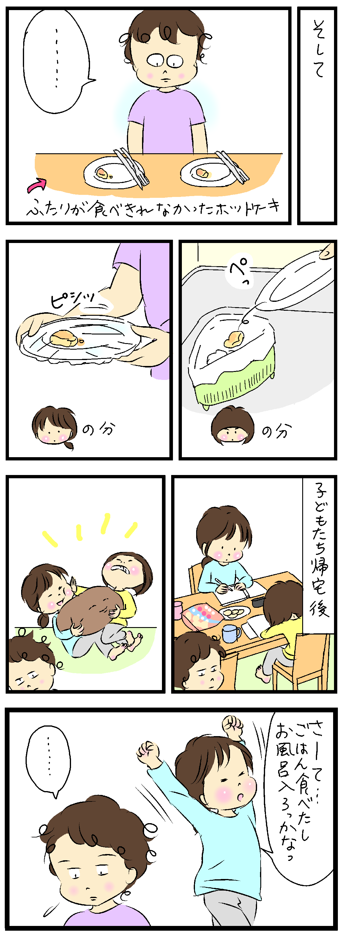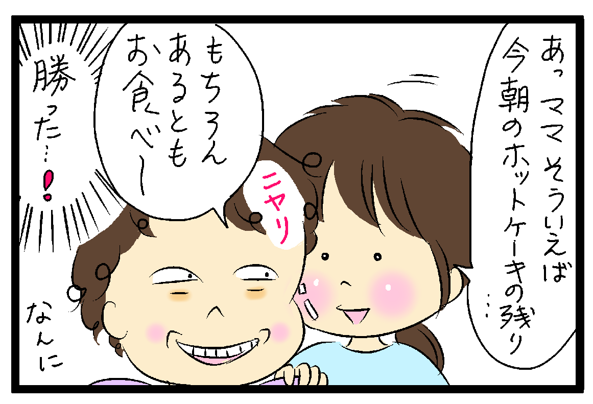 いそいそと一口分のホットケーキを温めました。