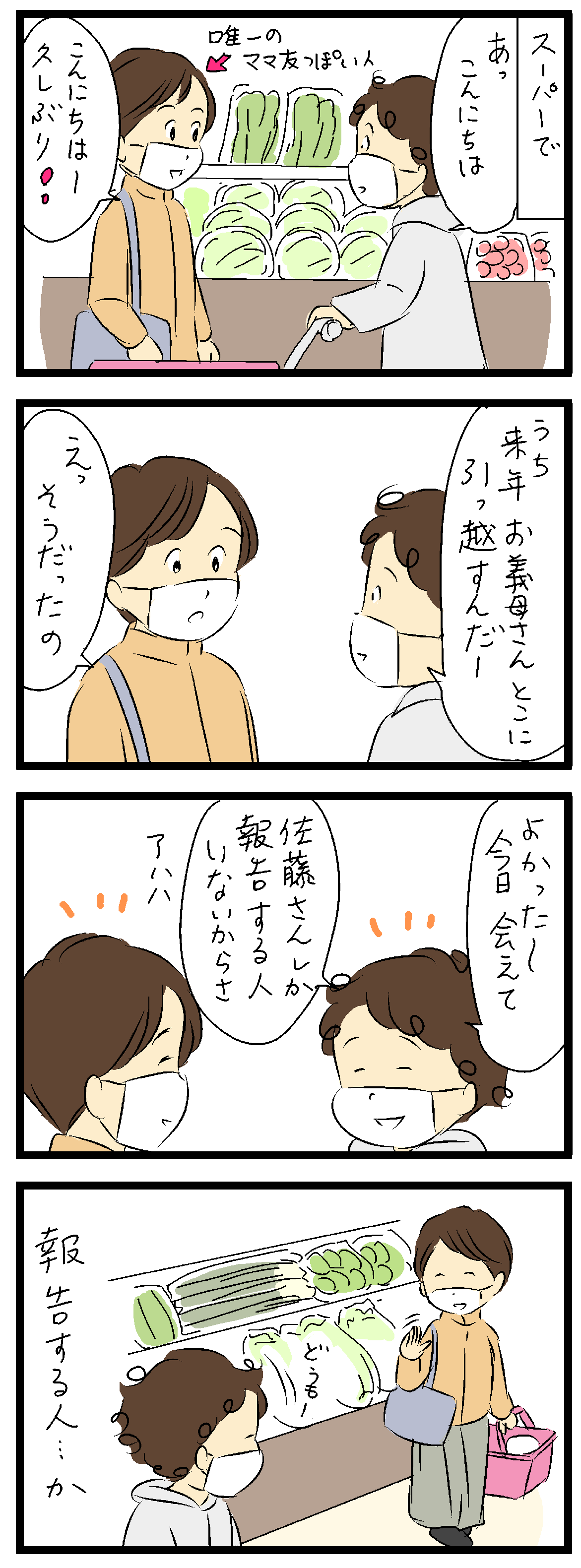転勤族で数年のおつきあいになってしまうのと、私の内向的な性格のため、友達というほどの人はどこへ行っても毎回あまり出来ないのですが、お店の人などには勝手に親しみを感じてしまい別れが寂しいです。