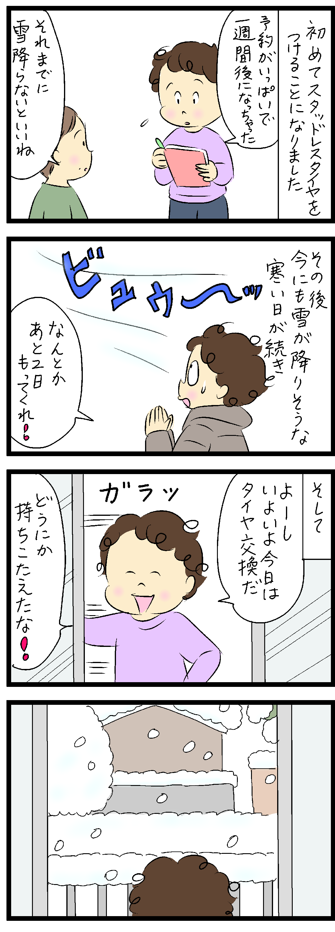 うちもスタッドレス交換の日(クリスマスイブ)に雪が積もって交換にも行けず予定全部詰んでしまいました🤗