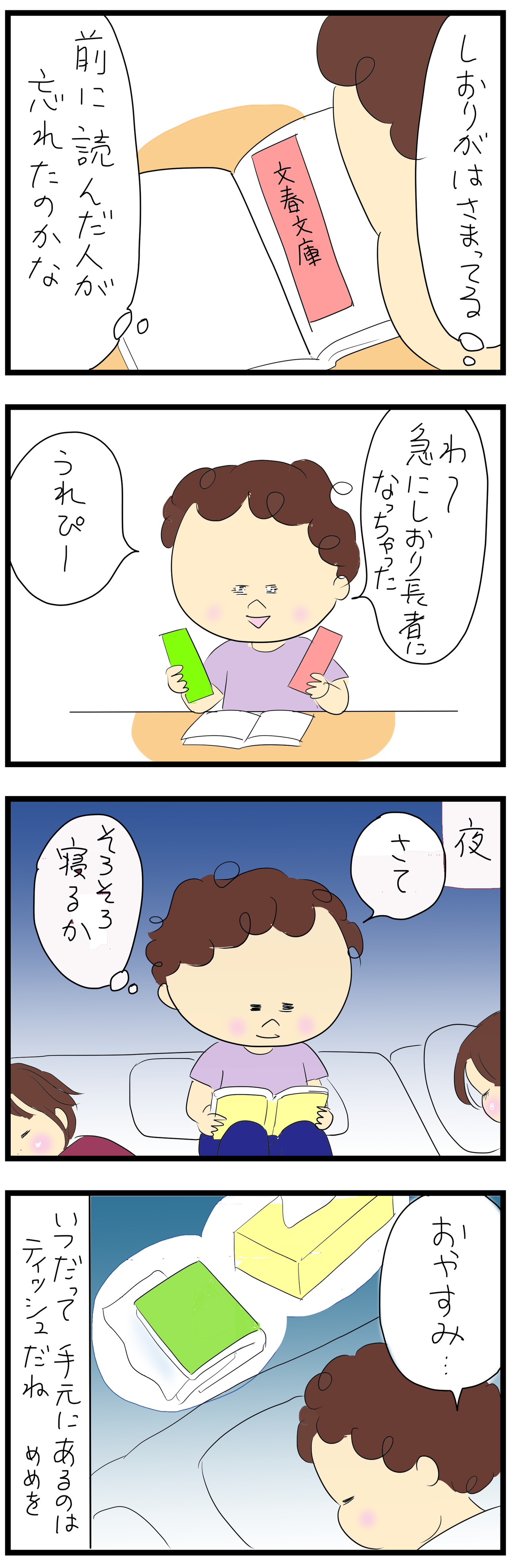 ティッシュはしおりにした後に、鼻をかんだりも出来るし、すごいぞ!ティッシュ!w