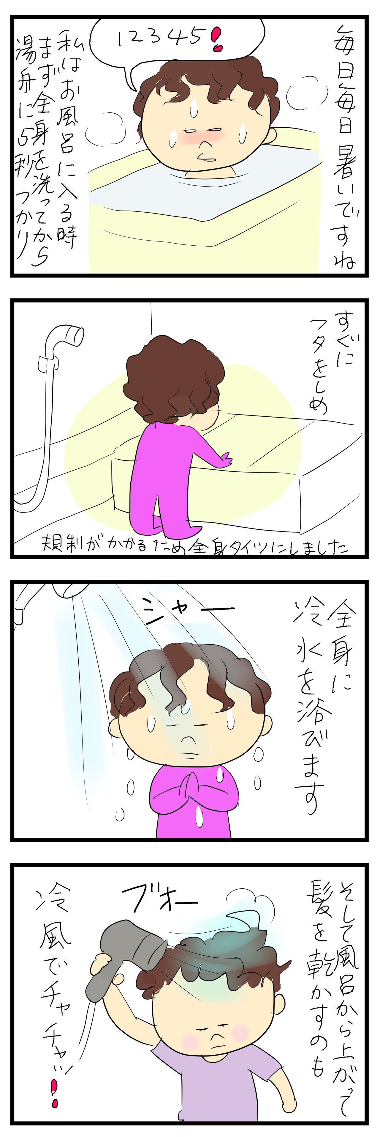 あんまりにも暑い時は湯舟に水を溜めて入り、体の芯から冷え切ります。