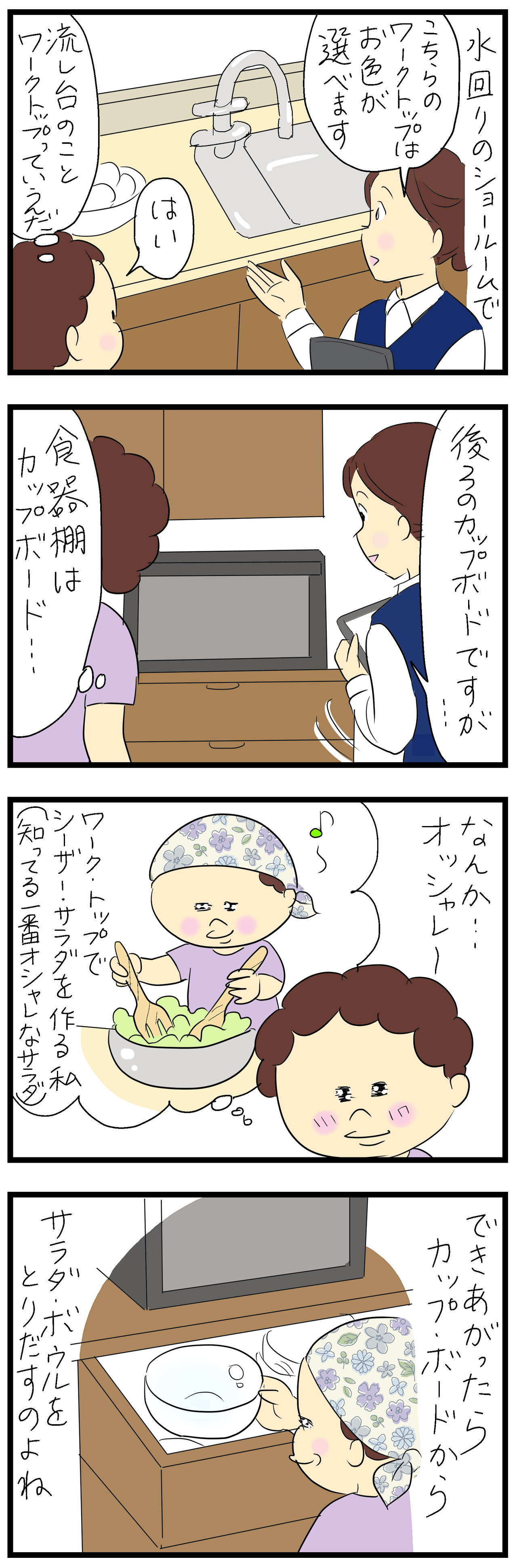 あとワークトップうちは白もしくはマーブルっぽい様な大理石っぽい様なもの2種類から選べて白にしたんですが、白は細かな傷が目立つのでマーブルっぽい方にすれば良かったかなぁとあとで思いました。