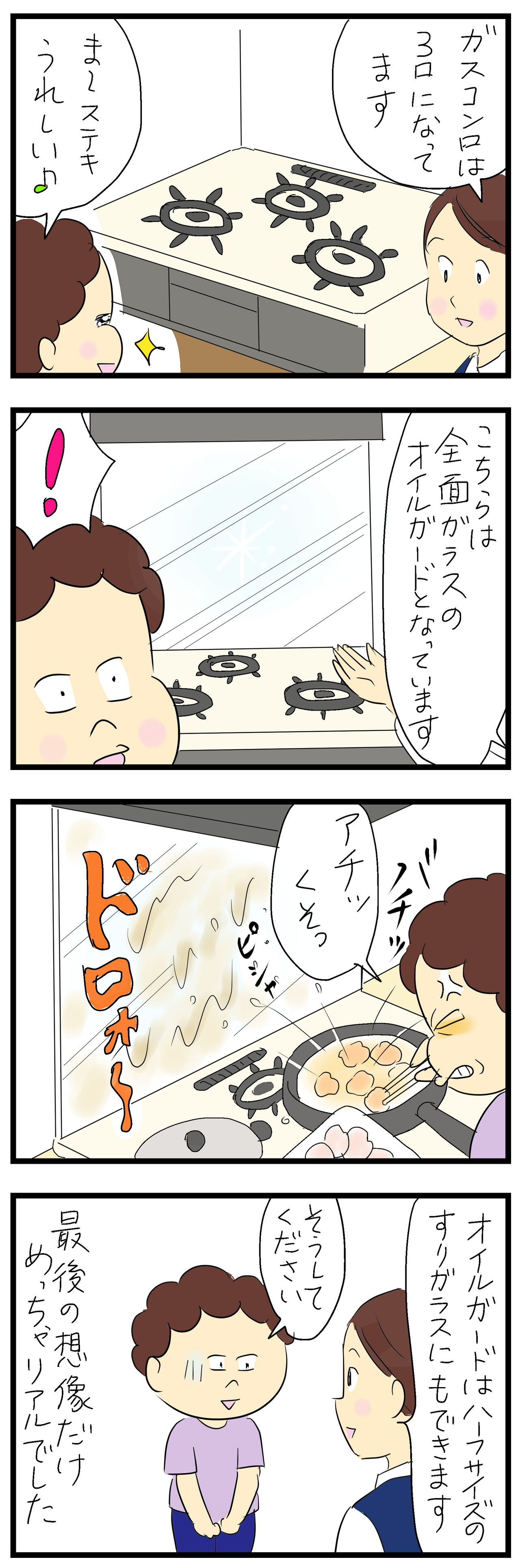 コンロ周りと横の壁の拭き掃除は軽くしますが、ハーフの方でも油汚れ気にならないので良ければぜひ(*^^*)お家づくり応援してますm(_ _)m