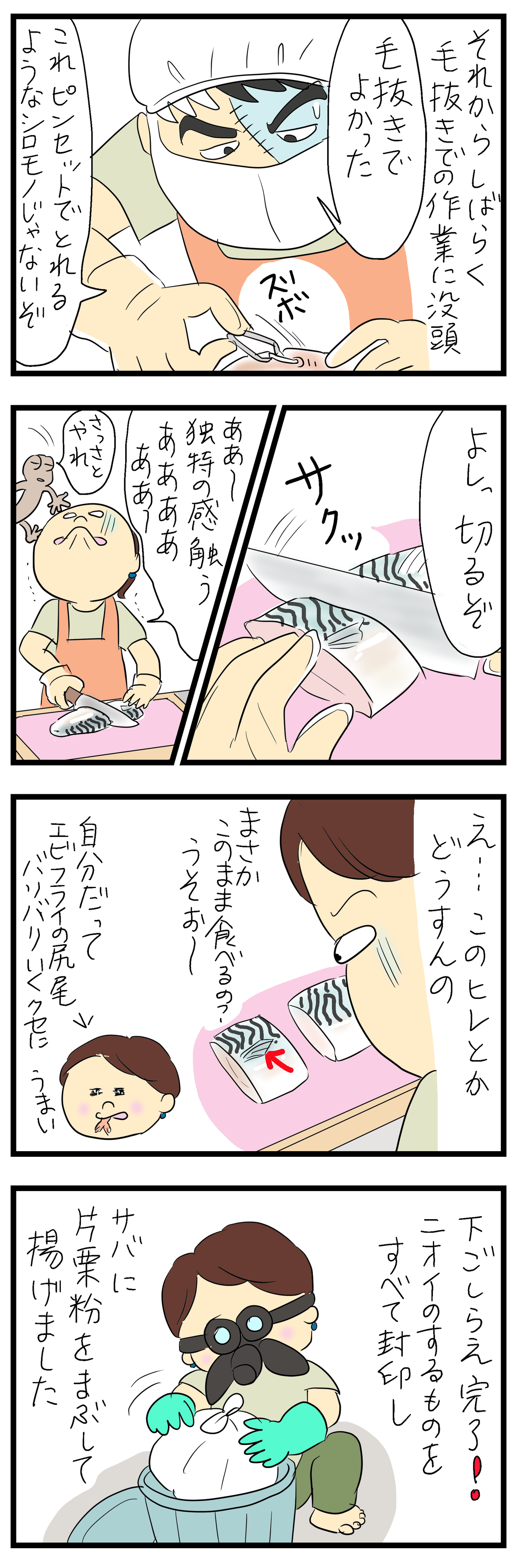 サバは大好きなんですが、嫌いな方はこんなににおいが気になるんですね。最初にしょうがをすりおろして置いとくと少しはにおいが軽減されるかなー。苦手な人はやっぱり気になりますかしら。
