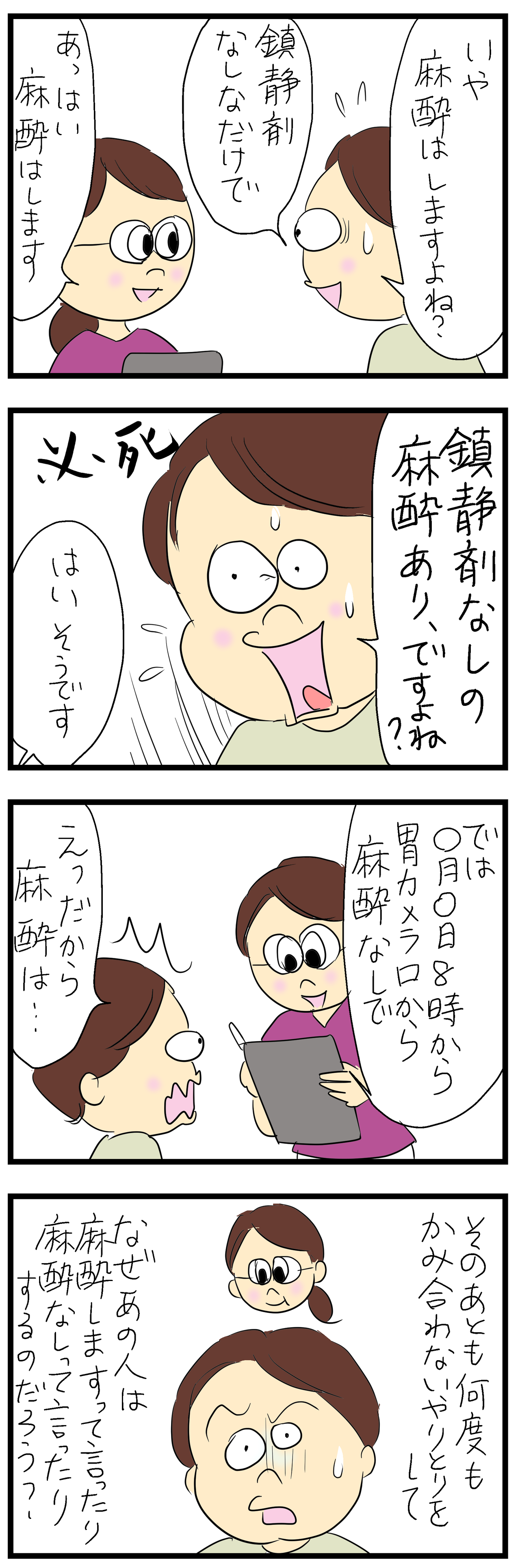 説明の時に「鎮静剤」という言葉を使っているのに、確認の時だけ必ず「麻酔」と言われたら、