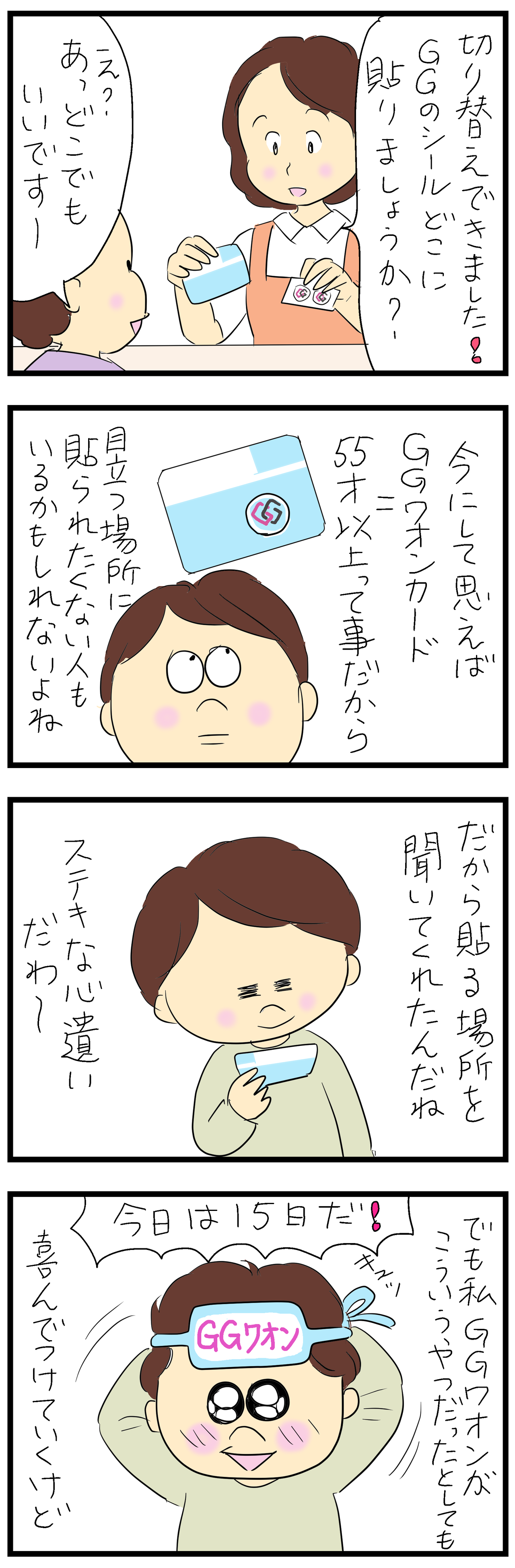 先日、自分の父がイオンのカードを新しく作るのに付き添ったら、GGって俺がジジイって事か?!って店員さんに聞いてたので💦