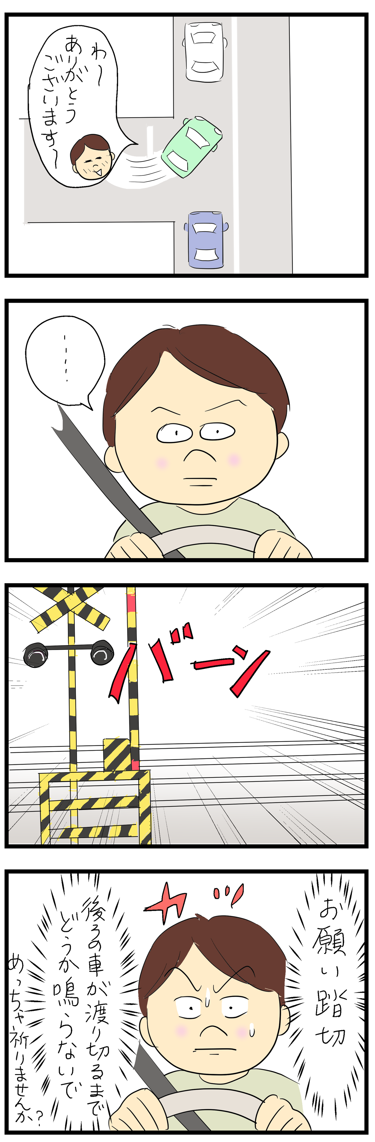 で、自分が渡って踏切が鳴りだしたら「ごめんなさい!!」ってお詫びの気持ちでいっぱいになります笑
