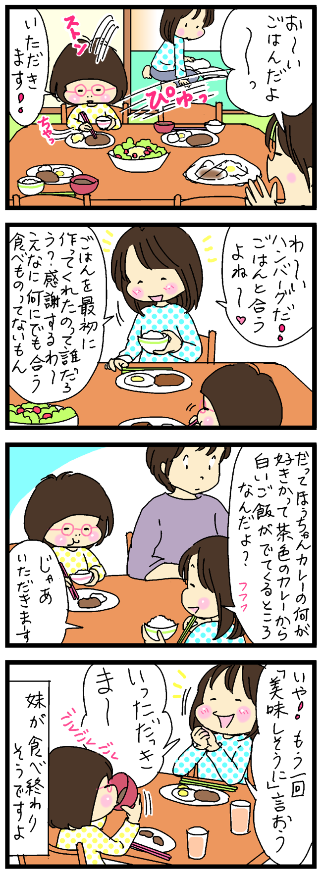 私がさっさと食べ終わる頃に 妹はまだ半分も食べ終わってなかったりしてました。