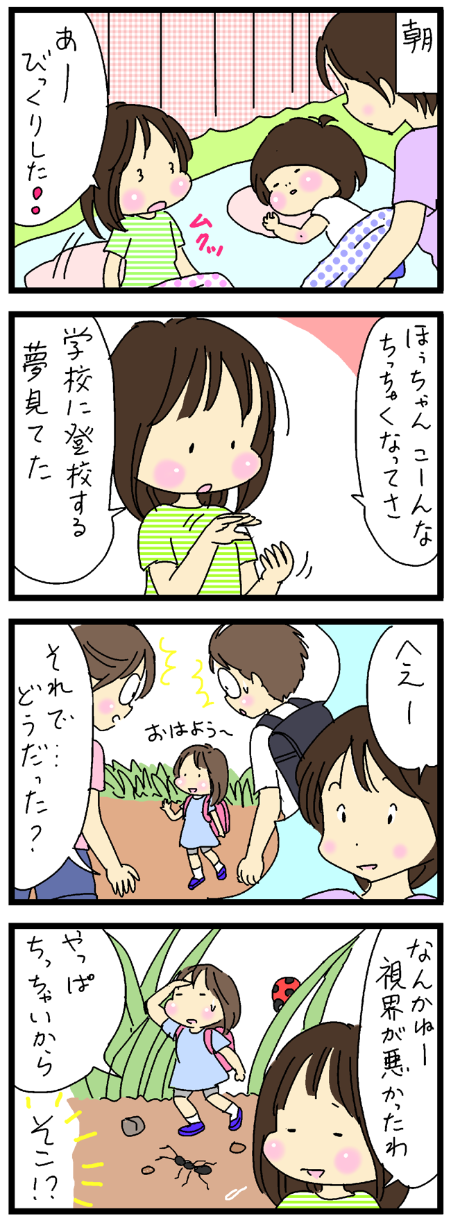 ちっちゃくなっちゃった! 2017年07月25日 来てくださってありがとうございます(*´∇`*)はじめましての方はこちらから→登場人物紹介 前記事について。。。 おにぎりのもとは中身の小袋をいくつかもらってきたのですが、わかめや梅が入っていたみたいです(^∇^) 【クリックしていただけるとうれしいです♪】にほんブログ村 人気ブログランキング たくあんムスメたち。 天然長女とおっさん系次女の泣き笑いコミックエッセイ (メディアファクトリ... Amazon たくあんムスメたち。ラインスタンプ→こちら 「ほぅちゃん(長女)」カテゴリの最新記事 < 前の記事次の記事 > コメント コメントフォーム 名前 コメント 記事の評価 リセット リセット 顔 星 情報を記憶 コメントを投稿する