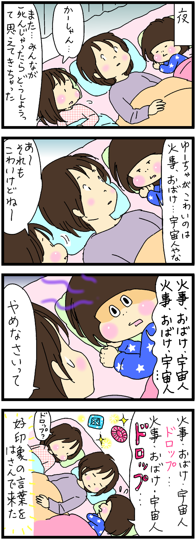 ゆーちゃこわこわスイッチ入らなくてよかったね。ドロップって言ってたら怖さ半減だね(^^)