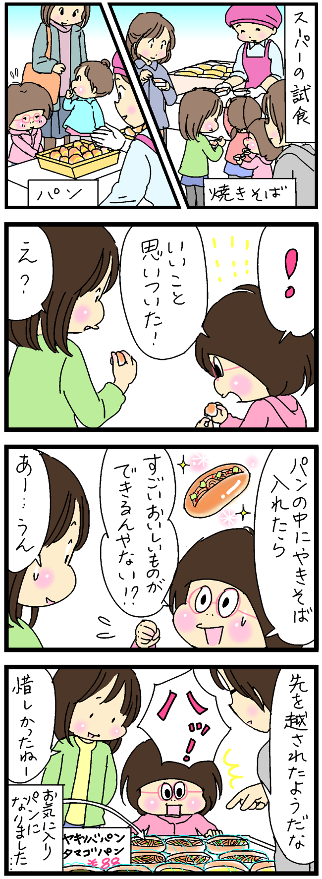 焼きそばとパンを食べて閃いて..って試食しまくってますよね(^▽^;)