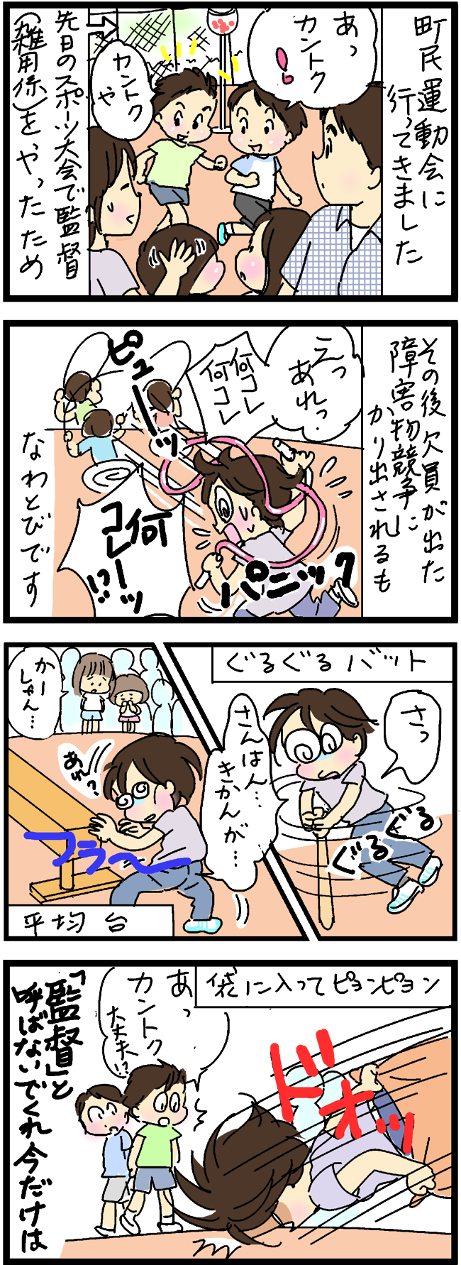 「監督」 2016年10月12日 いつもいいね!やコメントを下さってありがとうございます(*^▽^*)楽しみにして下さっているとのコメント、ほんとうにうれしいです!これからもよろしくお願い致しますo(^▽^)o ↓更新のお知らせが届きます^^ 「お母さん(私)」カテゴリの最新記事 < 前の記事次の記事 > コメント コメント一覧 (9) 1. まささん 2016年10月12日 06:40 大丈夫ですか?(;゜0゜) ぐるぐるバットなんかやったら、まささんも倒れます (ーー;) 2. urashimajiro 2016年10月12日 07:45 監督の威厳が~((((((゜ロ゜; グルグル回っちゃいけませんね(;゚д゚) お怪我はありませんでしたでしょうか… お疲れ様です、監督!! 3. こぷこ 2016年10月12日 08:14 大変でしたね。 奥の2人の不安そうな顔… お疲れ様でした! ママの頑張る姿みてますよ! 4. ima 2016年10月12日 09:29 監督!お疲れさまです! 顔は大丈夫ですか?( ; ゜Д゜) 三半規管…他人事じゃない…(^_^;) 今は赤子がいるのでそっとしといてもらえますが、そのうち私もかり出されるんやろなあ(´д`|||) 5. あキティ 2016年10月12日 09:33 涙が出ました( ;∀;) 6. 成績110番 2016年10月12日 10:07 子供が見ている前じゃ・・失敗は恥ずかしいですね(^_^;) 監督と呼ばれて力みすぎちゃいましたかね。 ナイスファイトでしたね。 7. みゆぅ 2016年10月12日 12:00 あらら… 大変でしたね(>_<) だんだん体力がね… お怪我はなかったですか? 8. ぶーりん 2016年10月12日 14:03 監督、お疲れ様でした!w ぐるぐるバットや袋ピョンピョンなんて やったら、私も完走できる自信 ありません(^-^;) というか大人には激しすぎるような… そういうのは子どもだけに してほしいですね(´・ω・`) 9. 安 串子 2016年10月21日 15:10 ゆーちゃんが小さい頃からずーっと 見てますが、変わらないメメさんに 嬉しくなっちゃって思わずコメントw 不器用だけど(失礼!)一生懸命な メメさんがもう、ずっと大好きです ブログの更新楽しみにしています コメントフォーム 名前 コメント 記事の評価 リセット リセット 顔 星 情報を記憶 コメントを投稿する