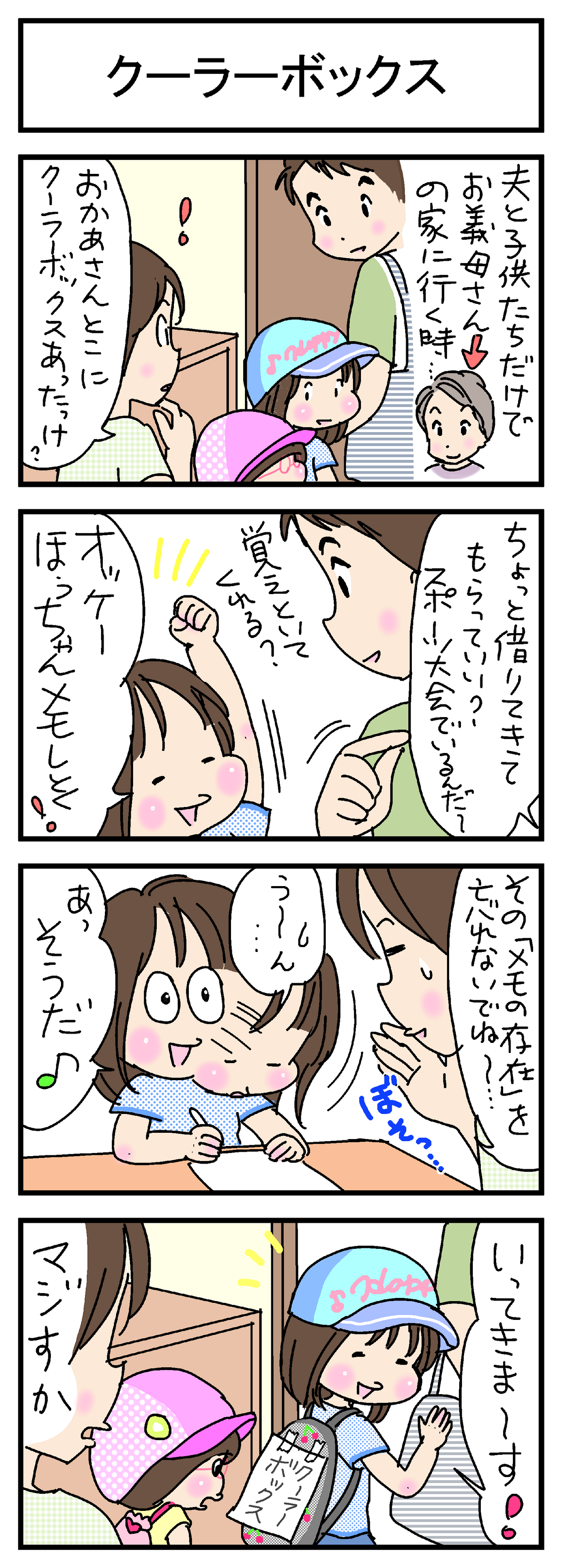 クーラーボックス 2016年07月06日 いつもいいね!やコメントを下さってありがとうございます!更新の励みにさせて頂いております(*^o^*)前記事について。。。風呂上りにあまりテンション上げられると普通より汗かきやすいので困りますよね(;^_^Aもう今日の仕事増やさないで欲しい。。と思っちゃいます。 よろしくお願いします^^ たくあんムスメたち。ラインスタンプ→こちら 「ほぅちゃん(長女)」カテゴリの最新記事 < 前の記事次の記事 > コメント コメント一覧 (10) 1. てつとだよ 2016年07月06日 12:56 もうちょっと大きくなると手に書きそう(*´艸`*)笑 2. Mami 2016年07月06日 13:33 昔、同級生があまりにも忘れ物がひどかったから、先生に「算数プリント」って書いた紙をランドセルに貼られてたのを思い出しちゃいました。 3. しろ 2016年07月06日 13:45 かわいいですね~! ほーちゃん、ゆーちゃ、 ずっとこのままでいてほしー! 4. まああみ 2016年07月06日 15:12 必要な時まで剥がれませんように( ̄人 ̄) でもほうちゃんナイスアイディアだよーっ♡ 5. mieee 2016年07月06日 16:34 ほうちゃんののほほんとした感じが私の癒しです(≧∇≦)❤️ 6. なのはな 2016年07月06日 22:13 本当に可愛くて、更新を楽しみにしています。 3回目ですが、最初から読み返して大きくなったなぁー と1人感動しています。 7. ima 2016年07月07日 09:25 まじすか(爆) メモを見て「これなんだっけ?」ってなりませんでしたか?(笑) 高校生の時に「魔女の宅急便」のビデオテープを貸す約束をして忘れないように手のひらに「まじょ」って書いて先生に見られて「!?」ってなったことがあります(^_^;) 8. こぷこ 2016年07月08日 08:44 ほうちゃん素直でかわいいですね。 すごく子供らしくて大好きです((*´∀`*)) ゆうちゃの顔が笑えました! ママはゆっくりできましたか? 9. ユリコ 2016年07月09日 07:28 ほうちゃんらしい可愛いアイディアですね。 これならかーしゃんからのお使いを忘れる心配はないですね。 パンツ一丁でおちゃらけるゆーちゃも素敵です。 10. あや姉 2016年07月09日 13:26 ざ、斬新!(笑) コメントフォーム 名前 コメント 記事の評価 リセット リセット 顔 星 情報を記憶 コメントを投稿する