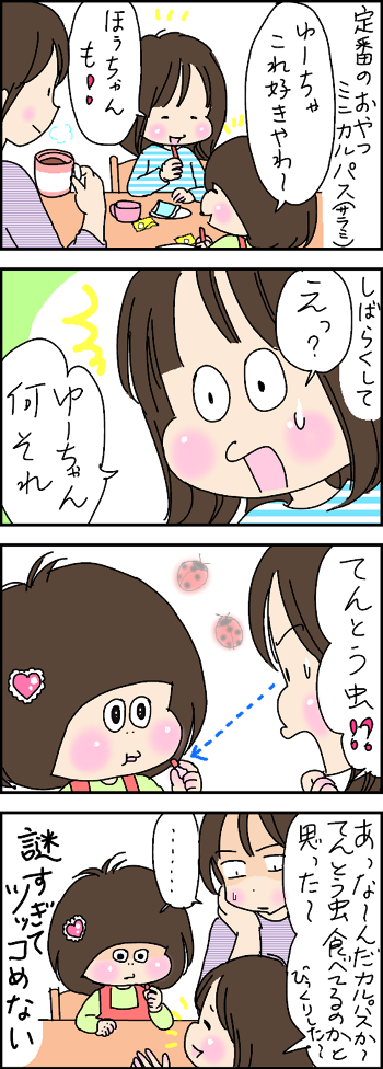 てんとう虫に見えるのもどうかって感じですが、てんとう虫にみえるくらいの小ささまでチビチビ食べるのも大変ですよね~