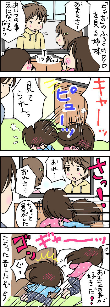ちゃおにドキドキ 2015年12月01日 いつもいいね!やコメントを下さってありがとうございます(*^▽^*)楽しみに読ませて頂いております!前記事について。。ねりきゃんランドとかグミをくっつけて作るお菓子とか好きな子多いですよね。けっこうな値段するのでたまにしか買えませんが(^▽^;)読者様の好きな時間に新着記事がチェックできるようになりました! 「姉妹」カテゴリの最新記事 < 前の記事次の記事 > コメント コメント一覧 (25) 1. きっちょむ 2015年12月01日 06:58 あはは!!え~~~!?そんなに? ちゃおさん、ツボわかってますねえ~~ いや~この情景、是非見たかった・・・ユーチューブにアップしてほしいくらいです。 2. ローズ 2015年12月01日 06:58 ちゃお 懐かしい~♪ ネットでちゃおの付録がすごいことに・・・という見出しだけ見たのですが、このことだったのですね! なんか照れてる二人可愛い。刺激が強すぎたのでしょうか? ゆーちゃん頭痛かったね(>_<) 3. 桜 2015年12月01日 07:50 ケガしてないかな? 4. オガ 2015年12月01日 07:59 わ…私までドキドキしてしまいました… 今はこんな付録なんですね!! ゆーちゃんおでこ大丈夫ですか?笑 5. かずきんぐ 2015年12月01日 08:09 可愛すぎる(≧∀≦) 6. るにか 2015年12月01日 08:09 初めてコメントします。 ちゃおの付録のDVDうちの小4の娘もよく観てました!12歳っていう漫画をアニメ化したやつですよね+゚。*(*´∀`*)*。゚+ 子供と一緒に観ていてけっこうクサイ台詞を平気で言えるんだなースゴいなぁ…と親心で見ていた記憶が…(笑)うちの子はきゃーっなんて可愛らしい反応しなかったです(苦笑) 7. 梵 2015年12月01日 08:55 2人が久々にもんぺはいてるの見た~(笑) 8. なのはな 2015年12月01日 09:02 今は付録がDVDなんですね~ 2人のキャー可愛い事*\(^o^)/* 幼稚園児てもおませな子が多い中で、ほーちゃん、ゆーちゃんは、いいな! このまま大きくなってね! 9. みゆき 2015年12月01日 09:24 おはようございます! 今日もひと笑いありがとうございます。 ほんとかわいすぎます(^^) 我が家は男の子三人なのですが、少3の長男でも、まだ好きとかよくわからない。とか言ってるくらいなので、ほんと女の子って、大人ですよねー!!(≧∇≦) 10. かっちゃん 2015年12月01日 09:28 ほーちゃんもゆーちゃんも可愛すぎる♡♡♡ 乙女だなぁ♡♡♡ 11. はるな 2015年12月01日 09:29 初コメントさせて頂きます。 いつも、たのしく読ませていただいています! わたしも小さい頃同じような反応してて、 懐かしいなと思いました(⌒▽⌒) ちょっと見逃してしまうこと多々ありました(笑) 12. りよこ 2015年12月01日 10:09 ちゃおってマンガ?ですよね? そんな付録なんですね、 今時のお子様はすごいなぁ~ かわいいなぁ。 私もよく妹とりぼんやなかよし読んで、全プレ応募したりしてました。懐かしいなぁ。 13. おコメ* 2015年12月01日 10:11 時代が違うなぁ。DVDなんて付録についてくるんですね!私の妹は神風怪盗ジャンヌを見て鼻血をよく出していました* ゆうちゃん、コブなってない?大丈夫(^ω^)? 14. も~ 2015年12月01日 11:24 可愛い~(///ω///)♪ と思っていたら…ゴンッって…。 大丈夫でしたか?? 15. たぬきち 2015年12月01日 12:32 ゴンて頭大丈夫? 後でいたそ 恥ずかしいのね 16. むくたろ 2015年12月01日 13:08 めめさん~、うちも ちゃお 買ってます~(^O^) 恋愛話、多いですね(^◇^;) 付録が豪華ですよね!漫画家なりきりセットとか電気が点くし。 私は りぼん派 でした~!! 付録は便せんとかでしたね~。 17. 桜 2015年12月01日 14:46 こもった音って痛いですよねぇ~(*_*) けど…、キャーキャーしちゃう気持ちはわかります。(オバサンだけど) 18. チャミ 2015年12月01日 14:49 (σ≧▽≦)σ ただただ笑いました(о´∀`о) ゆーちゃ頭大丈夫だったかな? あのにぶい音の感じだとけっこう 痛そうな(笑) 二人とも純粋で可愛いですね! めめさんいつも笑いをありがとうございます‼ 19. cldhdm 2015年12月01日 15:49 わたしも幼稚園くらいの頃やってたマーマレードボーイを見てはキャーっと照れて逃げ出したりしたなぁ… 自分の娘もそういうのを見たらそんな反応を見せてくれるようになるのかな、って想像したらかわいかったです笑 ほうちゃんとゆーちゃ、いつも可愛くて癒されます。これからも楽しみにしています。 20. おぽた 2015年12月01日 17:17 うぐぉぉお!!Σ(゚ロ゚;)めちゃくちゃ痛そう…。容易に想像できる音が頭の中で鳴りました…低めの音で「ドゴッ」って具合に… それはもとより、大丈夫でしたか?!怪我してないといいのですが… 21. ima 2015年12月01日 18:36 私も小さい頃ちゃおを買って読んでました♪ キスシーンにドキドキしてました(*^^*) 今は付録にDVDがあるんですね!(゜ロ゜) 娘は1才くらいの時に私が見てたドラマのキスシーンの時に私の方を振り返って何か言いたそうな顔をしてました(^_^;) その年でキスに反応してたのでしょうか(^_^;) 今はほっぺやおでこや鼻にチューしてきます(*^^*) 22. タマ&トラ 2015年12月01日 19:10 いつも楽しく拝見させていただいてます。 もう(≧∇≦) 声出して笑っちゃいましたよ~(≧