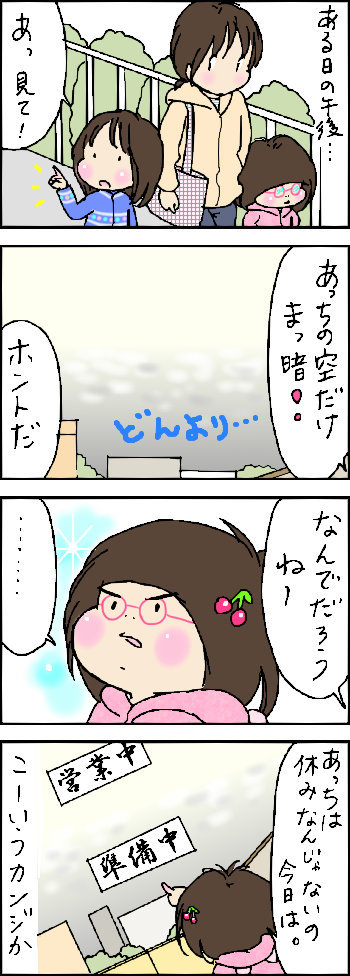 あっちとこっちで 2015年11月01日 いつもいいね!やコメントを下さってありがとうございます(*^▽^*)毎日の活力にさせて頂いております。読者様の好きな時間に新着記事がチェックできるようになりました!↓よろしければ応援クリックお願いします!人気ブログランキングにほんブログ村 「ゆーちゃん(次女)」カテゴリの最新記事 < 前の記事次の記事 > コメント コメント一覧 (11) 1. 桜 2015年11月01日 05:05 朝イチで、ほのぼのとさせて頂きました。(^^) いつも、ありがとうございます。 2. yykks5lovd 2015年11月01日 07:08 いつも楽しく拝見しています。 ゆーちゃんの発想が大好きです!ハッとしてもらう事もあったり、密かに勉強させてもらっています。 あと、ゆーちゃんのパーカー耳が付いてるんですね! 可愛いー♡ 3. maki 2015年11月01日 07:45 ゆうちゃの発想力は凄いですね~✨ そうかぁ、お空にもお休みがあるんですね☺️ 4. ローズ 2015年11月01日 08:51 ゆーちゃんの真剣に考えてる顔。凛々しいですね。お空もお休みがあると喜ぶと思います(^^)。 5. オガ 2015年11月01日 08:59 ゆーちゃん、ピンクが好きなんですか? 可愛いなぁ~♡♡♡ 発想が素敵♡ 6. たぬきち 2015年11月01日 10:06 ナイス♪えらい!(^_-) 7. 桜 2015年11月01日 12:20 本当にそうですね 空って不思議なくらい あっちこっちで 違いますねp(^_^)q なんか こちらが勉強になりました(^∇^) 8. かずきんぐ 2015年11月01日 13:58 素敵な発想です!(^o^) 9. やまもとりえ 2015年11月01日 15:01 子供の発送って本当に面白いですよねぇ! 10. ima 2015年11月02日 10:14 子どもの発想力はすごい! なるほど! 11. 野良猫堂本舗 2015年11月05日 23:28 ということは、晴れのエリアは『おひさま絶讚営業中♪』 うーむ!子供の発想力、侮れん! コメントフォーム 名前 コメント 記事の評価 リセット リセット 顔 星 情報を記憶 コメントを投稿する
