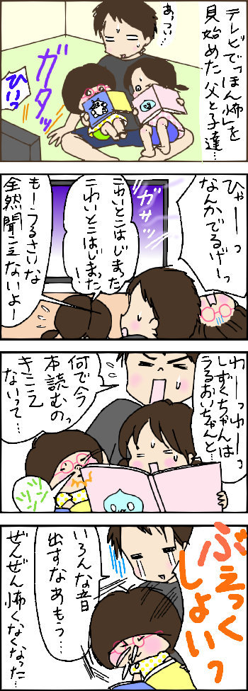 ほん怖 2014年08月19日 ↑よろしければ読者登録お願いいたします【クリックしていただけるとうれしいです♪】人気ブログランキングにほんブログ村 「姉妹」カテゴリの最新記事 < 前の記事次の記事 > コメント コメント一覧 (7) 1. ゆこりん 2014年08月19日 12:59 にぎやかですねぇ(笑) パパさんには悪いけれど、笑ってしまいました!! 2. ネコおやじ 2014年08月19日 14:33 もう可愛すぎるwwww 最初から最後のブエクショイまでwwwww 3. ネコおやじ 2014年08月19日 22:56 ちょ、速報です! ほん怖にマジもんの霊が映ってたらしいです… 最後の黒木瞳が出てたVTRの、ロッカーで先輩のおばさんと言い合いになるシーンで、ロッカーの鏡に別の顔が映ってるらしいんです……! 4. めめ 2014年08月20日 13:29 >ネコおやじさん ひぃぃ・・今録画しといたのチェックしたら・・それらしきものが!!これマジなのかな((゚m゚;)衝撃っす・・ 5. めめ 2014年08月20日 13:44 >ゆこりんさん ほんとにうるさくてなんにも聞こえないんですよ~ 子供ら寝かすと一気に静かになります・・ 6. たぬきち 2020年08月02日 18:24 落ちついて みたいほん怖 生活音あると 落ち着く こんなもん? 7. ハナハハ 2022年08月08日 10:23 未来からこんにちは(^∇^) 大爆笑っっっ!!笑 怖くなって絵本に集中したいるほぅちゃん、 絵本の角に刺激されるゆーちゃん、 2人に翻弄されつつ穏やかなパパさん、 みんな愛おしいです(*´꒳`*) コメントフォーム 名前 コメント 記事の評価 リセット リセット 顔 星 情報を記憶 コメントを投稿する