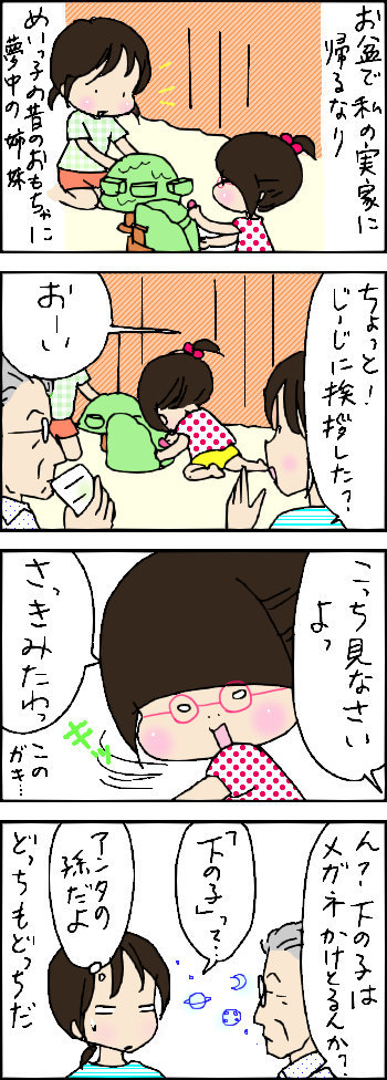 メガネの子 2014年08月13日 読者様の好きな時間に新着記事がチェックできるようになりました!↓よろしければ応援クリックお願いします!人気ブログランキングにほんブログ村 「実家の父」カテゴリの最新記事 < 前の記事次の記事 > コメント コメント一覧 (3) 1. ゆこりん 2014年08月13日 22:11 遊んでいるのは、『こえだちゃんの木のおうち』ですか? 私も持っていました。(ウン十年前のやつね) 長い間、取っておいたんですけどねぇ。 処分してしまったような気がする…。 私も一緒に遊びたいなぁ(笑) 2. めめ 2014年08月14日 06:46 >ゆこりんさん その通りです!テキトーにかいてしまいましたが(;^_^A 妹がこえだちゃん大好きだったんですよね~ でも超かさばるから押し入れでかなり幅をきかせてました・・・ 3. 海のこよしず 2025年08月28日 09:01 今から30年位前の話ですが、私の祖母の家の押入れにもこえだちゃんのおうちが入っていました。私のいとこ(現在40代後半)が遊んでいたものでした。私の小さかった娘達も行くと押入れの前にまっしぐら…こえだちゃんのおうちに夢中でした。懐かしく思い出しました。 コメントフォーム 名前 コメント 記事の評価 リセット リセット 顔 星 情報を記憶 コメントを投稿する