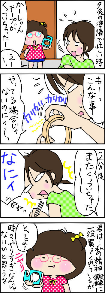 魔のセロテープ 2014年06月21日 にほんブログ村 4コマ ブログランキングへ↑ランキングに参加しました。クリックして頂けるとうれしいです 「ゆーちゃん(次女)」カテゴリの最新記事 < 前の記事次の記事 > コメント コメントフォーム 名前 コメント 記事の評価 リセット リセット 顔 星 情報を記憶 コメントを投稿する