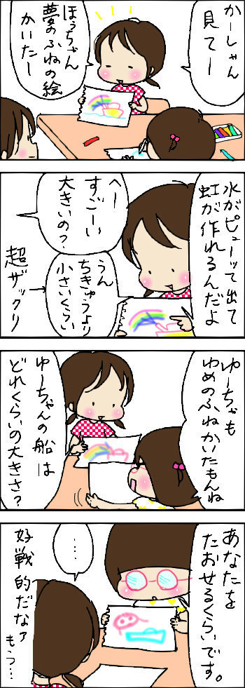 ゆめのふね 2014年05月21日 読者様の好きな時間に新着記事がチェックできるようになりました!↓よろしければ応援クリックお願いします!人気ブログランキングにほんブログ村 「姉妹」カテゴリの最新記事 < 前の記事次の記事 > コメント コメント一覧 (4) 1. たぬきち 2014年05月21日 12:55 ふふふ、楽しそう 2. めめ 2014年05月22日 12:58 >たぬきちさん いつもほんわか長女です^^; 3. にじ 2014年05月29日 12:39 こんにちは! ゆーちゃんかわいくておもしろいですね(^^)姉妹ってこんな感じなんでしょうか~? 興味深いです。またおじゃまさせて下さい♪ 4. めめ 2014年06月27日 12:11 >にじさん ありがとうございます(^o^) いつもこんな調子です・・ コメントフォーム 名前 コメント 記事の評価 リセット リセット 顔 星 情報を記憶 コメントを投稿する