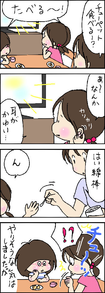 ふたりの娘との毎日を4コママンガで描いています。